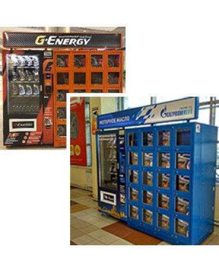 По индивидуальному заказу ПАО «Газпромнефть» мы создали комбинированный торговый автомат для продажи моторных масел и аксессуаров - SM COMBO. По всей России были установлены 73 вендинговые машины, выполненные в фирменном стиле компании. Проект направлен на маркетинговое продвижение моторных масел брендов “G-Energy” и “Газпромнефть”.