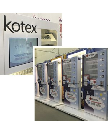 Бренд Kotex завоевал популярность среди студенток с помощью торговых автоматов SM MINI, установив в учебных заведениях автоматизированные торговые точки со своей продукцией. Компактные настенные машины установлены в женских туалетных комнатах.
