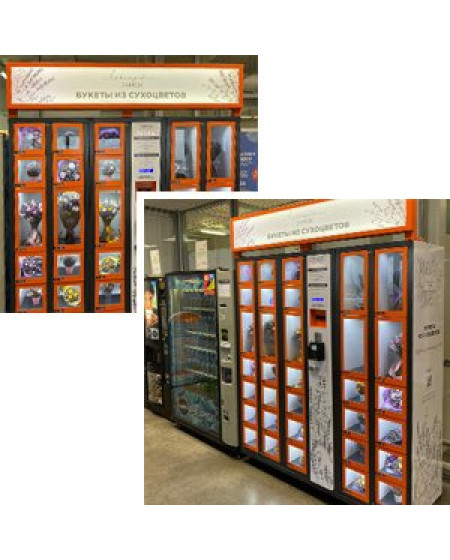 Компания Лавандовый замок использует торговые автоматы ELEMENT от VendShop вместо цветочных магазинов. Подсветка каждой ячейки позволяет выгодно продемонстрировать каждый букет. Автоматизированные торговые точки выглядят привлекательно и информативно и являются мощным маркетинговым инструментом.