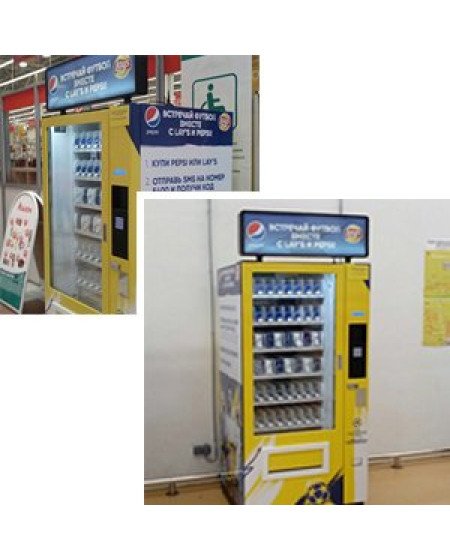 Совместную промо-акцию брендов Lay's и Pepsi помогли осуществить торговые автоматы VendShop. Вендинговые машины появились в сетевых супермаркетах в преддверии FIFA 2018. Купив товары брендов Lay's и Pepsi в «Ашане» покупатель мог отправить SMS с данными из чека, вести полученный в ответ код на клавиатуре торгового автомата SM 6367 и получить футбольный приз.