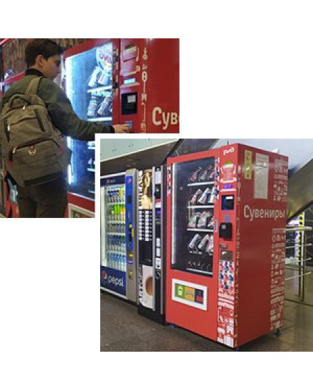 Наш клиент - ОАО "Российские железные дороги" - использует торговые автоматы SM 6367 от VendShop для реализации сувенирной продукции с символикой компании. В основном, это сумки и рюкзаки в компактной упаковке, которые удобно брать с собой в дорогу. Также в ассортименте присутствуют футболки и надувные подушки. В дальнейшем компания РЖД планирует расширение сети автоматов и их установку в других городах России.